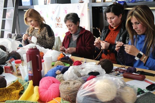 Las madejas de lana recaudados, son repartidos a distintas personas con los que trabaja la fundacion para el tejido de una manta que será entregada a un abuelito.